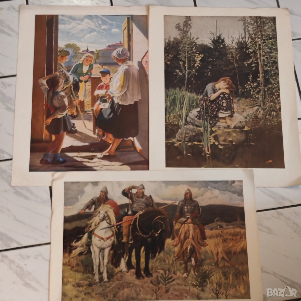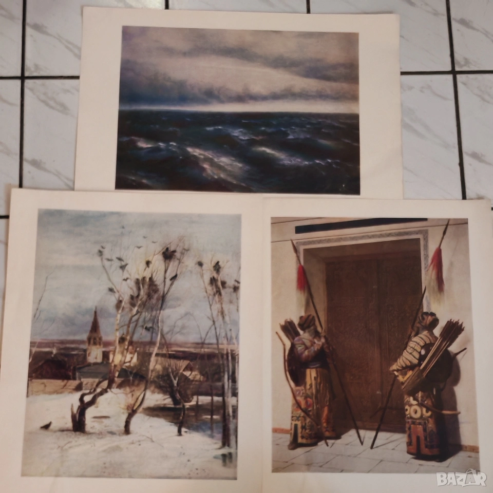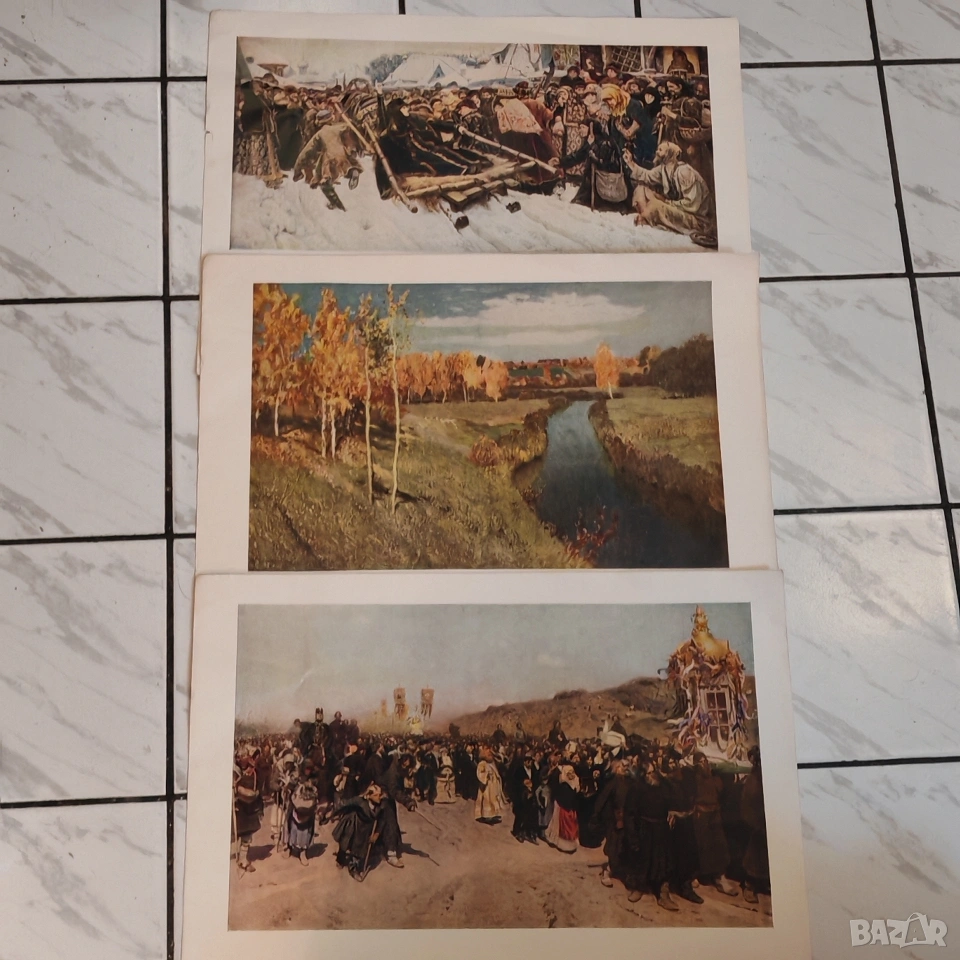 Репродукция на картини от Третяковска галерия, Москва. Първо издание на два комплекта. Първия комплект има опис на картините, забележка една липсва. Втория комплект е пълен но няма опис. В добро общо състояние. Еконт, Спиди, лично предаване. Телефон за връзка 0885776829.