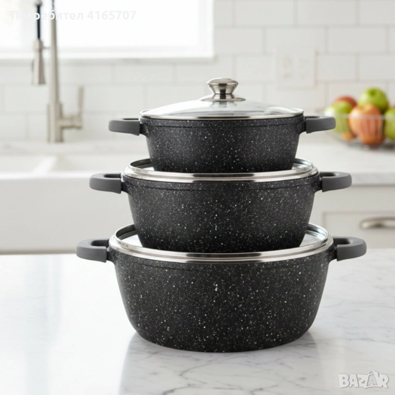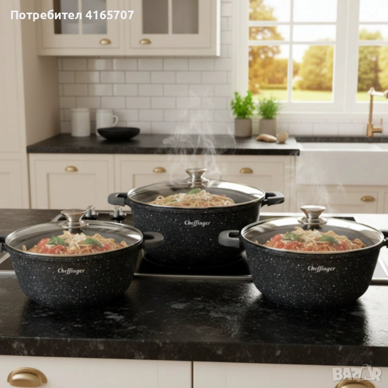 Комплект тенджери Cheffinger – 6 части с мраморно покритие, 20 / 24 / 28 см → Обява 53149888