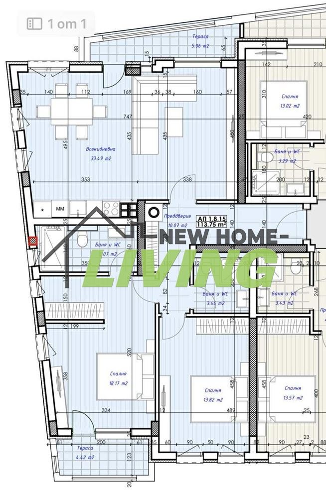 - Бани с тоалетни: 1