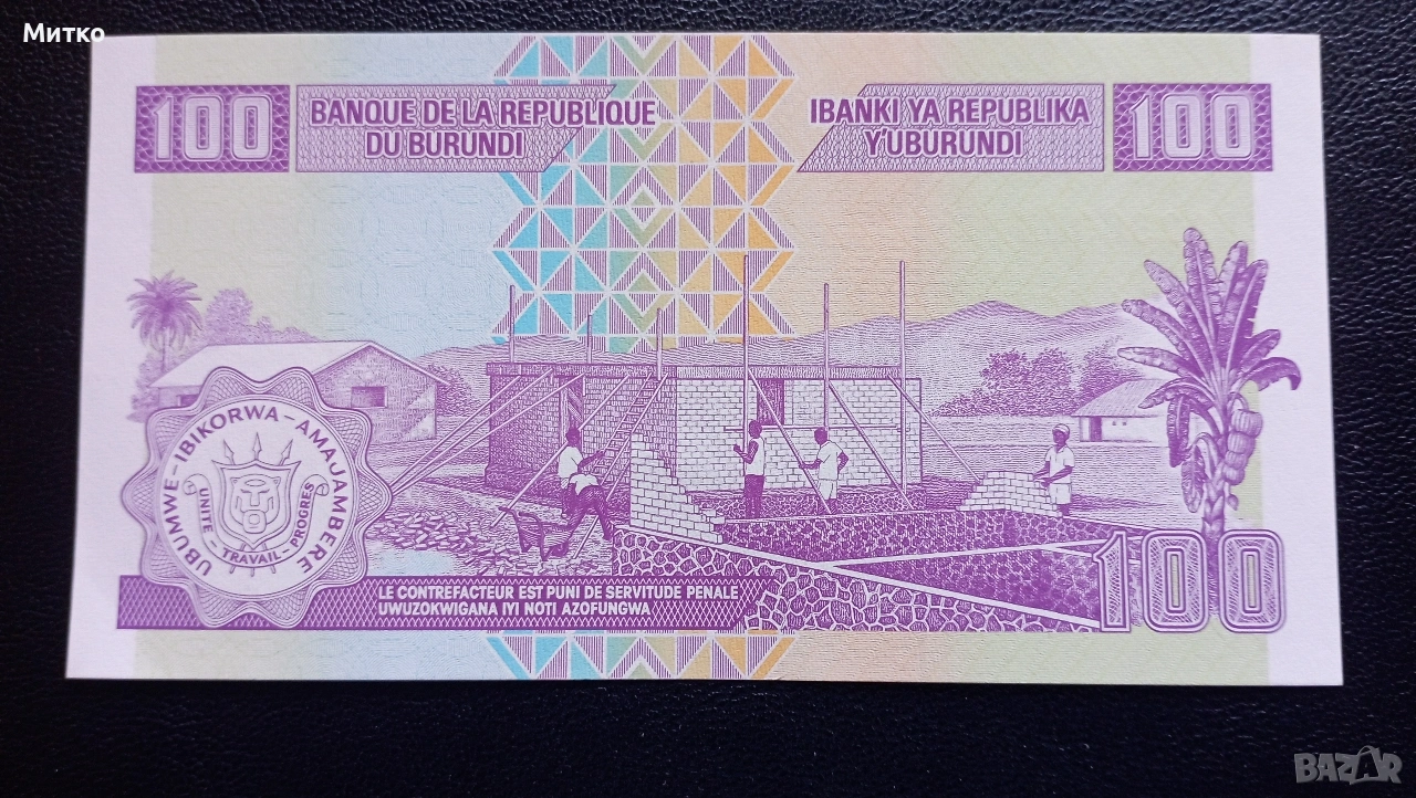 100 франка Бурунди , снимка 1 - Нумизматика и бонистика - 53149969 100 франка Бурунди , снимка 2 - Нумизматика и бонистика - 53149969 1/2