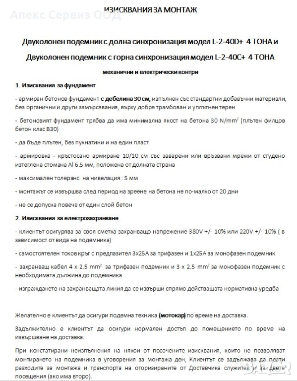 В цената са включени висококачествено хидравлично масло, комплект анкери и краен изключвател.