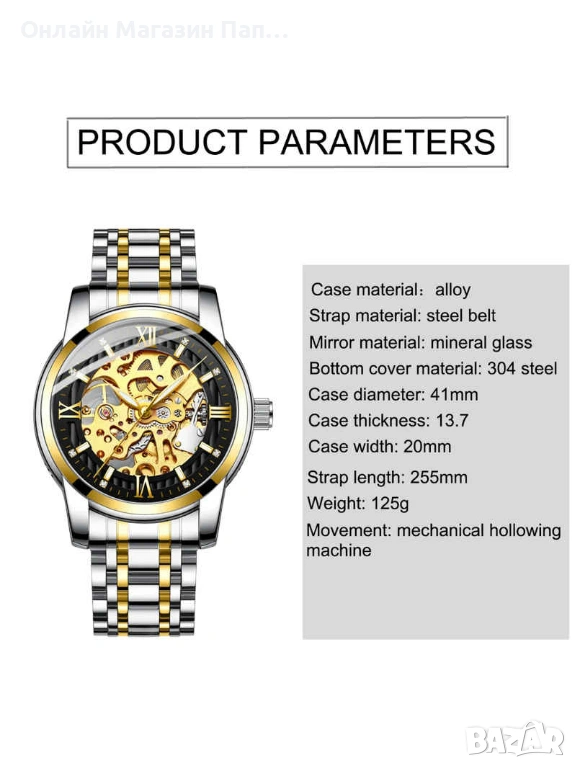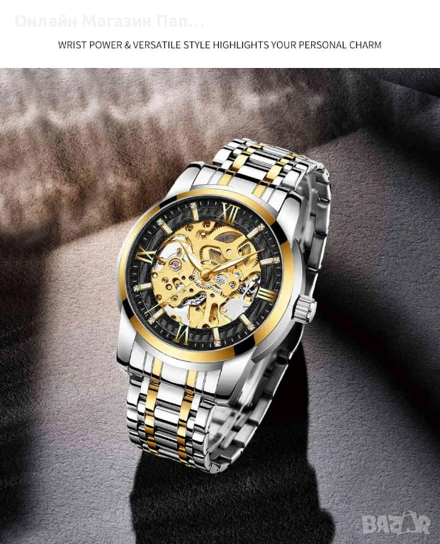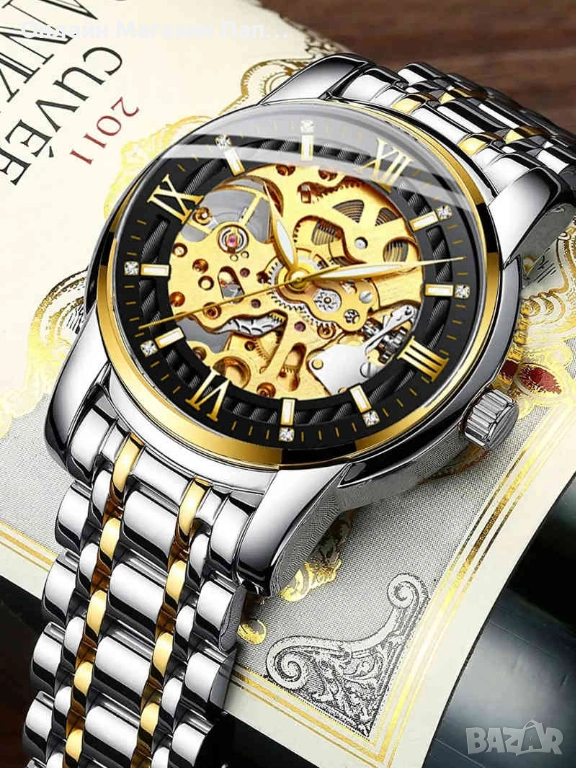 BIDEN 0197 е класически мъжки автоматичен часовник, който съчетава елегантен дизайн и надеждна механика. Диамантеният циферблат и скелетната конструкция подчертават луксозния характер на модела и разкриват красотата на автоматичния механизъм.