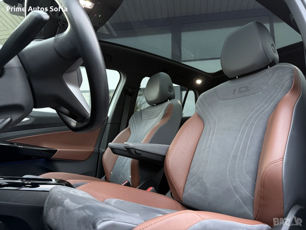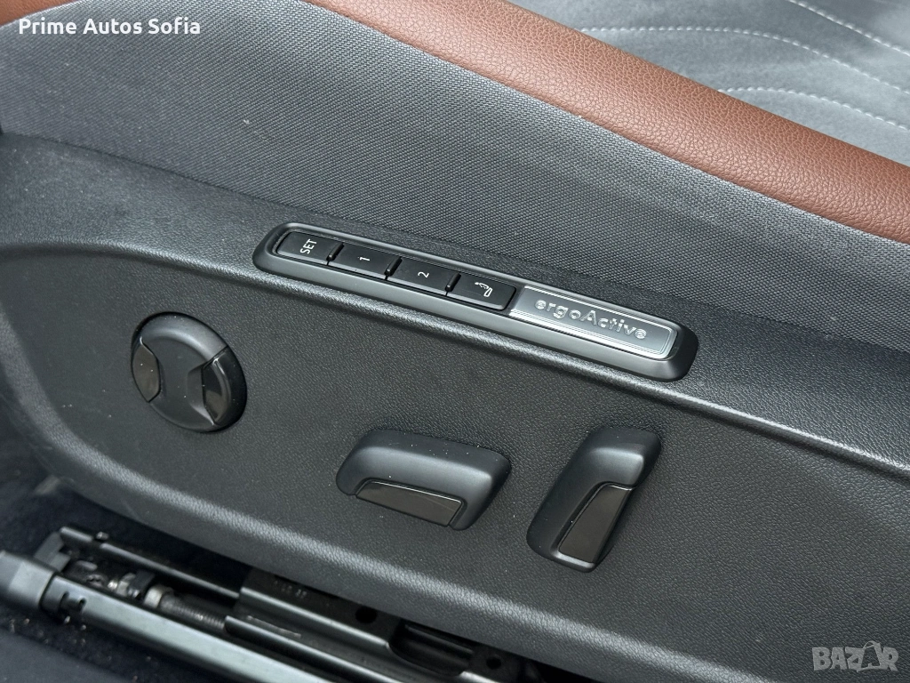 Седалки: Тапицерия от Алкантара и изкуствена кожа, електрическо регулиране с памет, лумбална опора и функция за масаж на предните седалки.