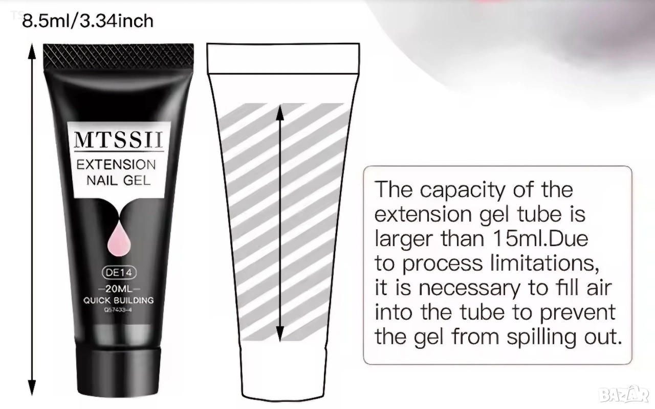 Течност за поли гел 20мл Четка за поставяне и оформяне на гела