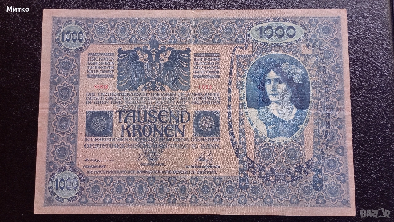 1000 крони 1902г Австро-унгария голяма банкнота → Обява 53150138