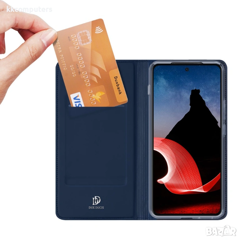 Приляга идеално към телефона. Защитава гърба, дисплея и в същото време има приятен и класически дизайн - тип книга. Не увеличава размера на Вашия Motorola ThinkPhone 5G съществено.