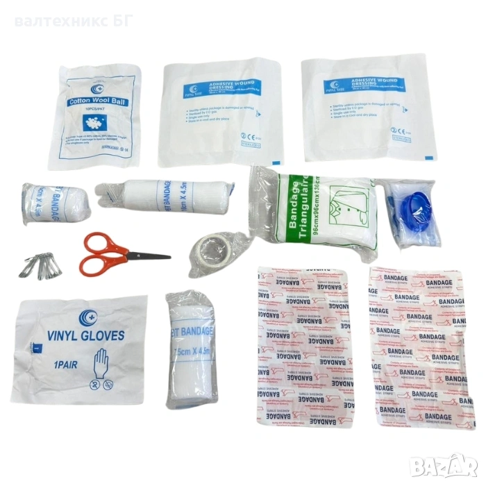 Модел: 03041 / 1271 Аптечка – комплект за първа медицинска помощ за МПС Заредена по изискванията на МЗ Аптечката за първа медицинска помощ е предназначена за използване в моторни превозни средства и е напълно окомплектована съгласно изискванията на Министерството на здравеопазването (МЗ). Осигурява необходимите средства за оказване на първа помощ при пътнотранспортни произшествия, наранявания и спешни ситуации. Комплектът е подходящ както за задължително оборудване на МПС, така и за лична употреба при пътуване, работа или в домашни условия. Основни предимства: Отговаря на нормативните изисквания на МЗ Пълен набор за спиране на кръвотечение, обработка и превързване на рани Подходяща за автомобил, бус, камион и служебни превозни средства Практична и лесна за използване при спешни ситуации Съдържание на аптечката: Еластична лента за кръвоспиране (по Есмарх), 5 см / 1 м – 1 бр. Марлен бинт, 5 см / 5 м – 2 бр. Марлен бинт, 8 см / 5 м – 2 бр. Марлен бинт, 10 см / 5 м – 2 бр. Медицински памук, 25 г – 1 бр. Стерилни превръзки за повърхностни рани, 10 × 10 см – 4 бр. Стерилна превръзка за повърхностни рани, 40 × 60 см – 1 бр. Пластири за рани, 3 × 6 см (по 4 бр.) – 2 опаковки Адхезивен пластир за фиксиране на превръзки, 2,5 см / 2,5 м – 1 бр. Триъгълна кърпа, 96 × 96 × 136 см – 2 бр. Стерилни полиетиленови ръкавици, голям размер – 2 чифта Разтвор на водна основа за дезинфекция на ръце и рани – 200 мл Безопасни игли – 6 бр. Ножица с тъпи върхове – 1 бр. Уред за обдишване – 1 бр.