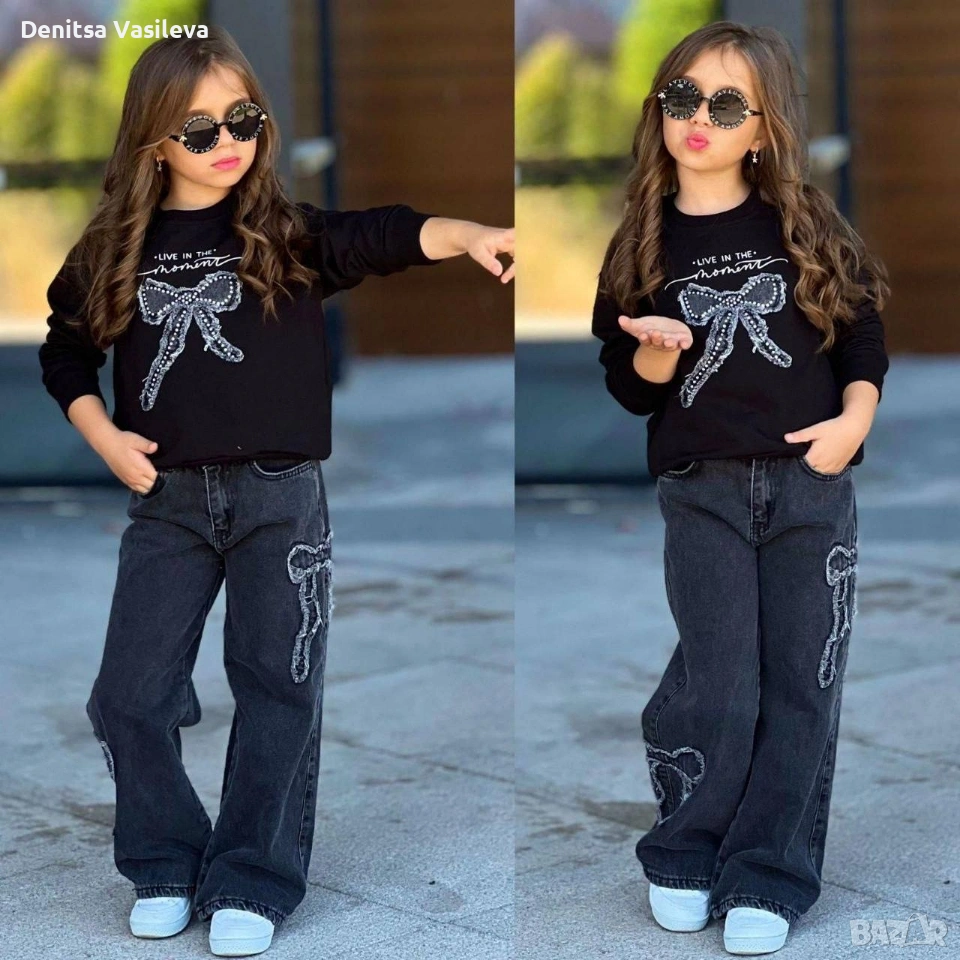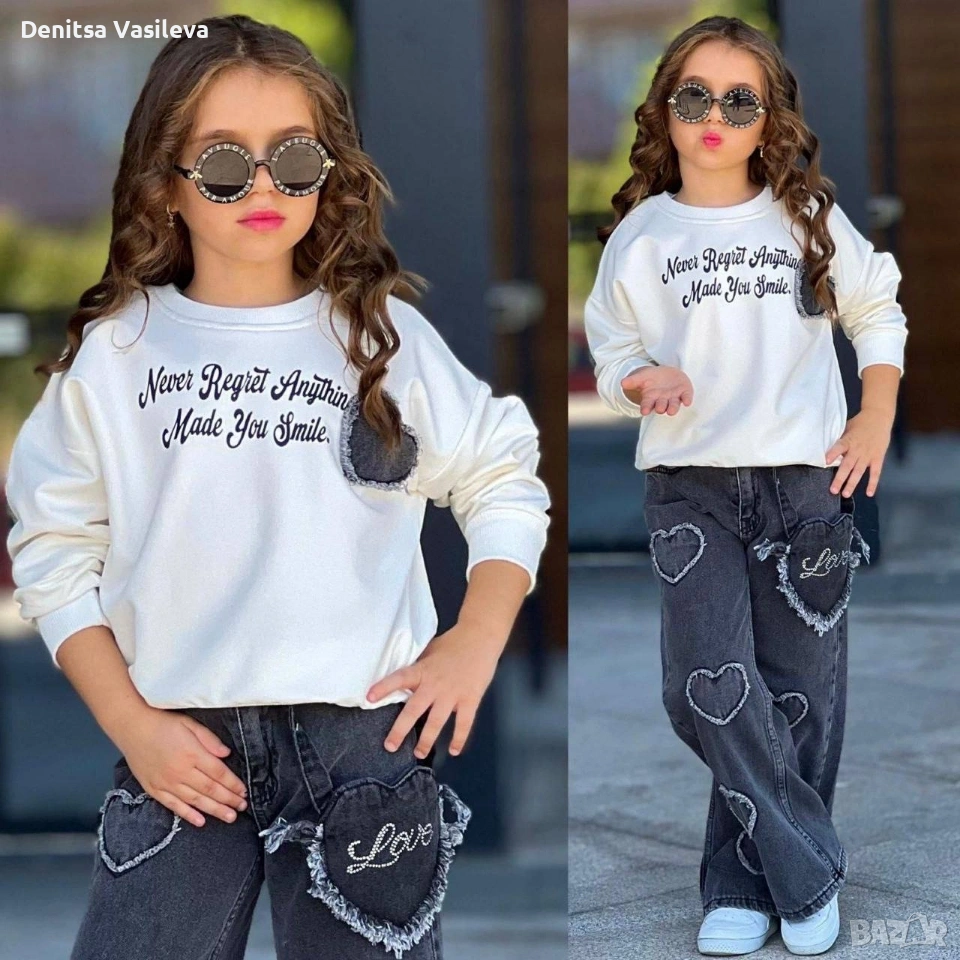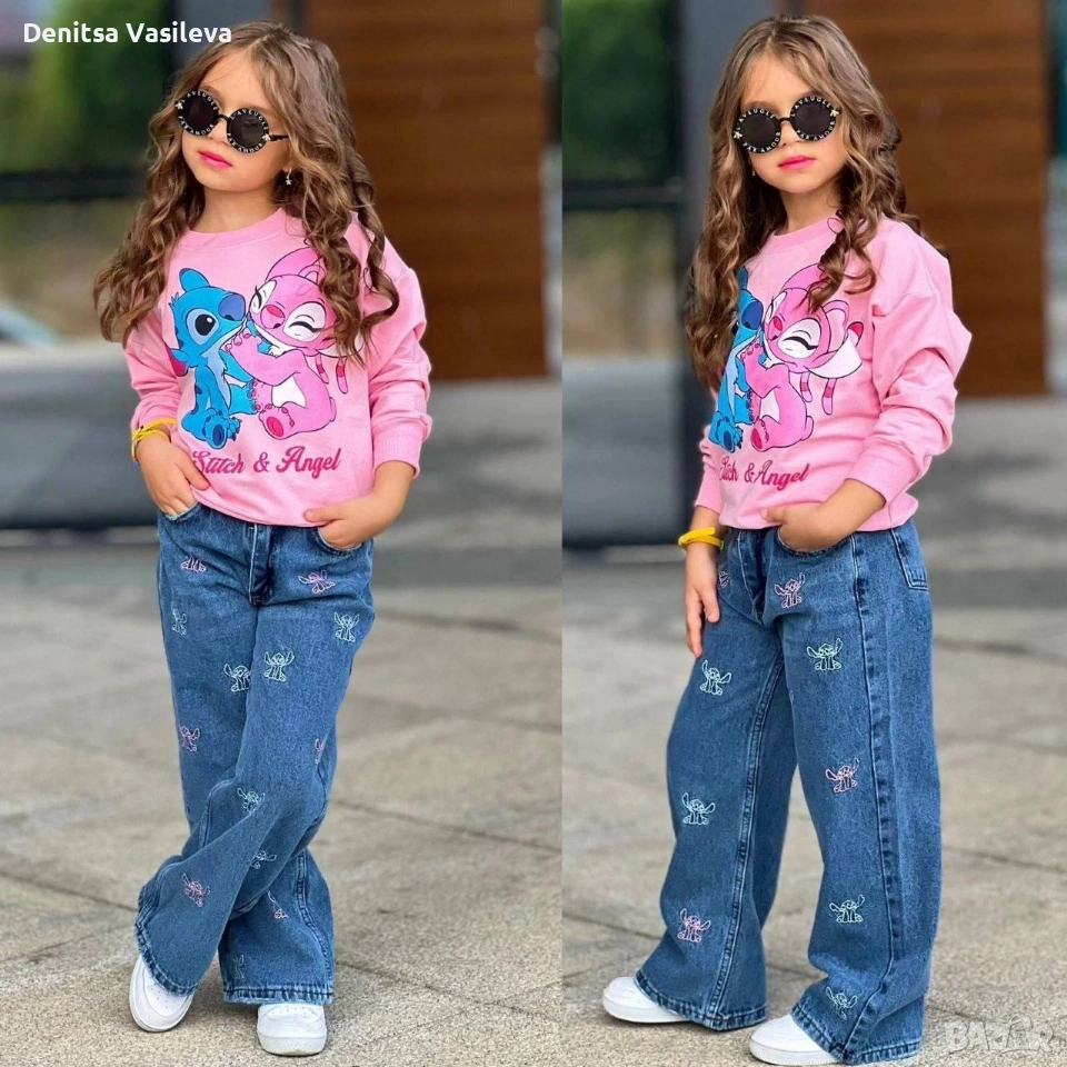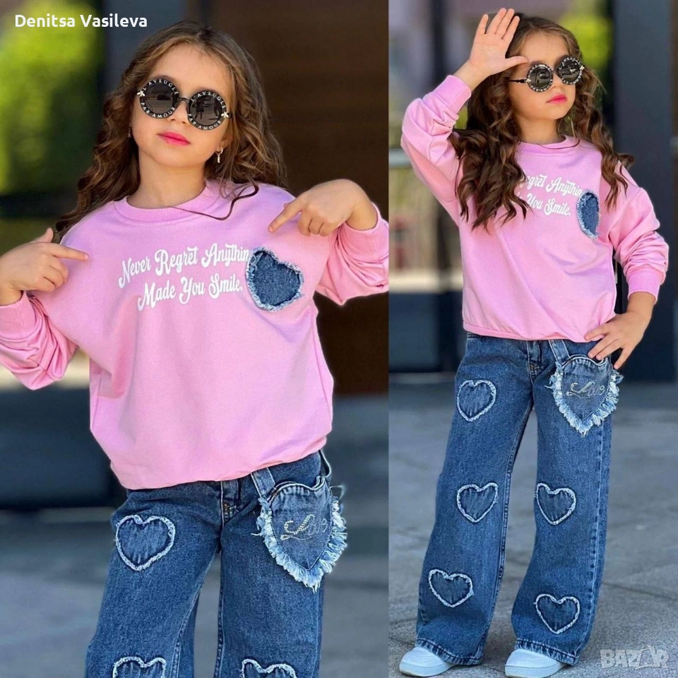 различни модели детски комплекти. дънки и блуза.