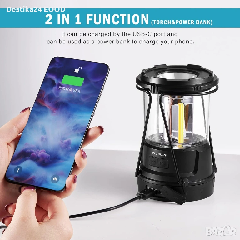 соларна лампа, къмпинг лампа, фенер, аварийна лампа, power bank, палатка, туризъм, риболов, LED лампа, ELUTENG