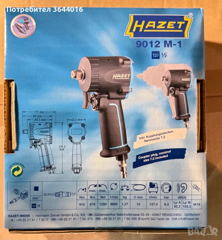 Ниво на звуково налягане (при работно налягане): 92,2 dB(A)