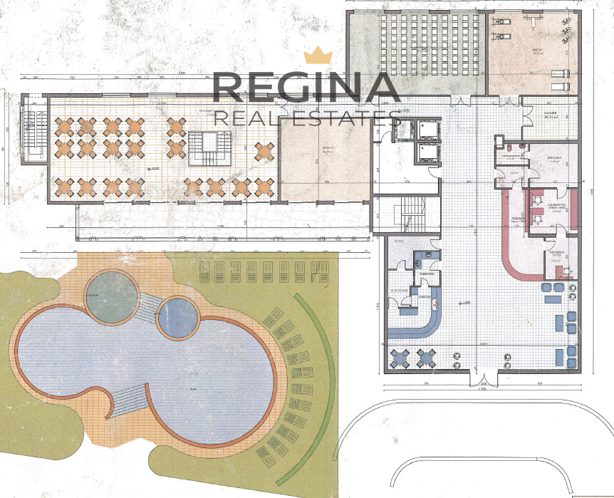 Бутик за имоти Реджина предлага за продажба перспективен имот с площ 2747 кв.м, намиращ се в гр. Хисаря до парка на Военен санаториум. Парцелът е в регулация, на изключително живописно и спокойно място. В него има изграден външен минерален басейн и заведение със застроена площ 66 кв.м. Функционират като напълно разработени в сферата обекти. Дворното място е оградено, красиво озеленено, добре поддържано и има кътче за отдих и игра. Има разработен проект за Хотел на 4-ри етажа със СПА услуги и жилищна част и РЗП 4877 кв.м.