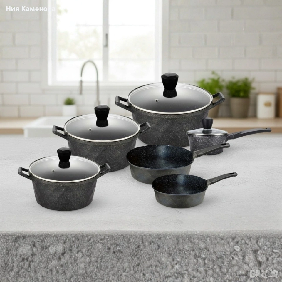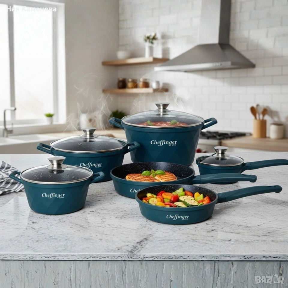 Премиум комплект съдове за готвене 12 части с мраморно покритие Cheffinger → Обява 53151077