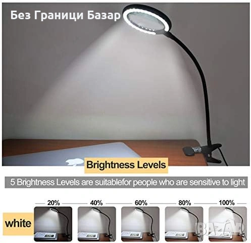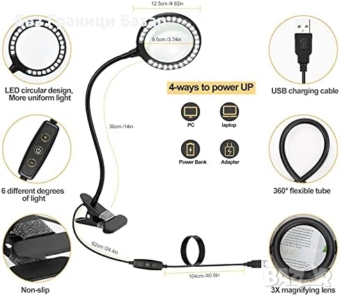 Нова Професионална LED лупа 3X с щипка USB захранване 6 нива на светлина