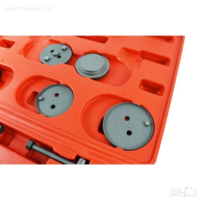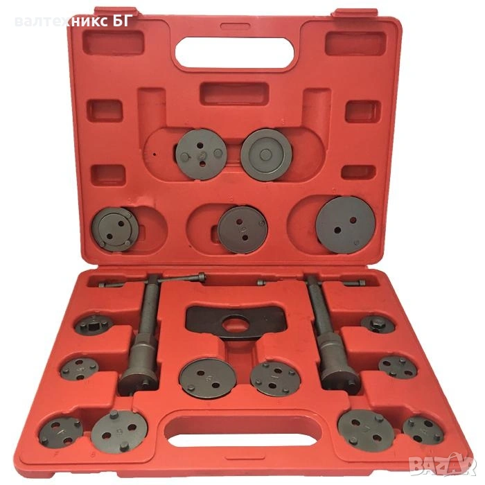 Професионален комплект от 18 части за сваляне на спирачни цилиндри, необходими за ремонт на превозни средства, оборудвани с дискови спирачки.