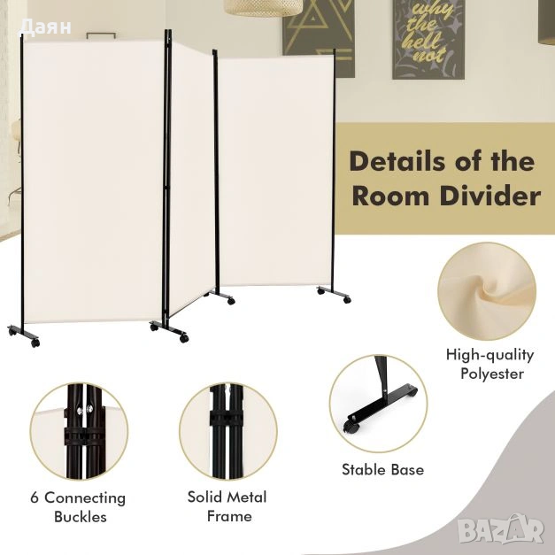 Разделител за стая с колелца 3-панелен COSTWAY, снимка 1 - Други стоки за дома - 53151772 Разделител за стая с колелца 3-панелен COSTWAY, снимка 2 - Други стоки за дома - 53151772 Разделител за стая с колелца 3-панелен COSTWAY, снимка 3 - Други стоки за дома - 53151772 Разделител за стая с колелца 3-панелен COSTWAY, снимка 4 - Други стоки за дома - 53151772 1/4