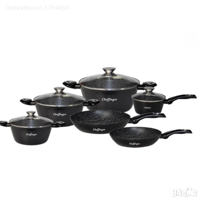 Комплект съдове за готвене Cheffinger от 10 части – тенджери и тигани с мраморно покритие за всички