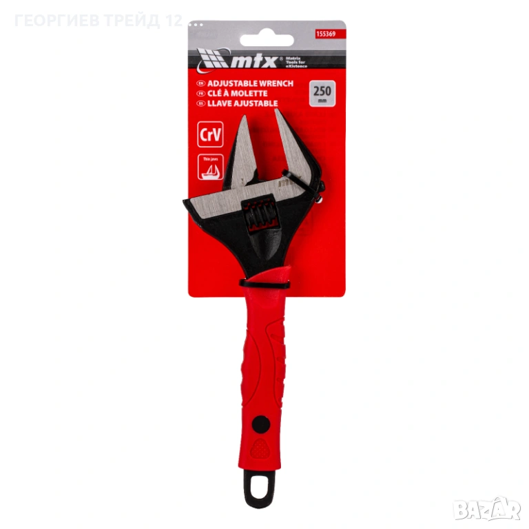 Ключ раздвижен, фосфатиран, MTX 155369 с тънки челюсти, дължина 250 мм - 14.13 Евро