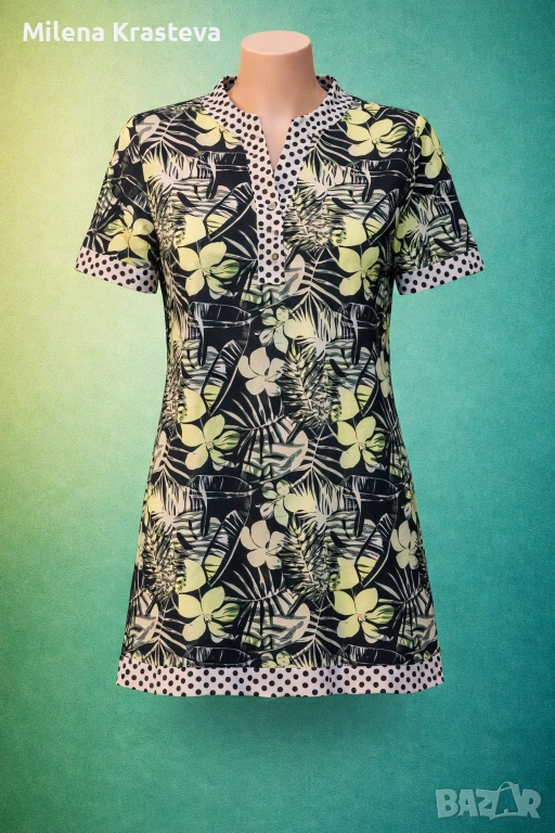 Рокля с фларален принт. Без следи от употреба. Лека. Гарнитурните орнаменти я правят различна.