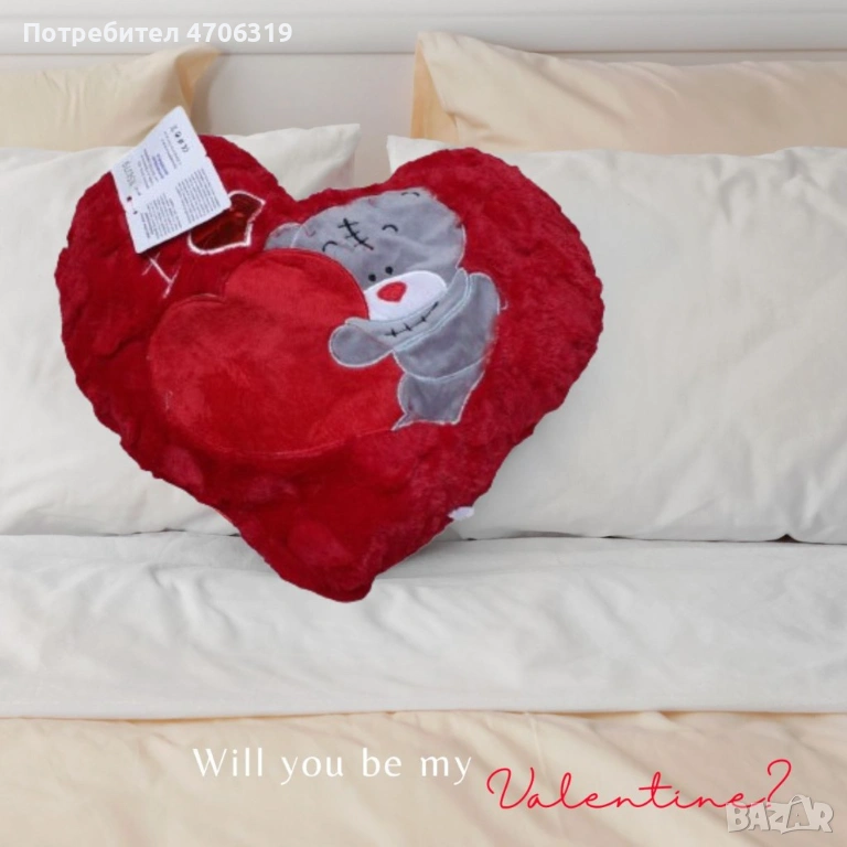 Мека и нежна пълна с романтика, тази възглавничка представя синвола на любовта в компанията на сладко мече.