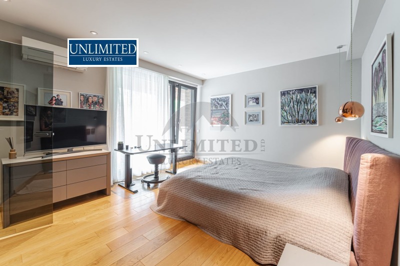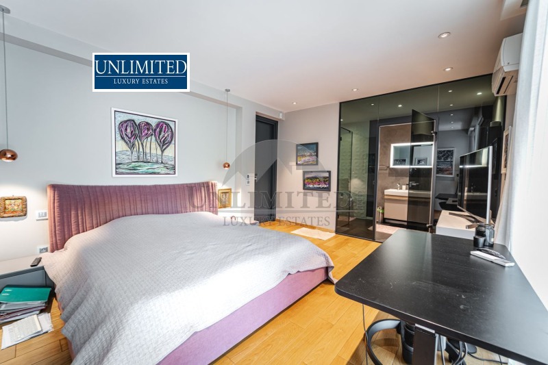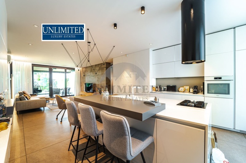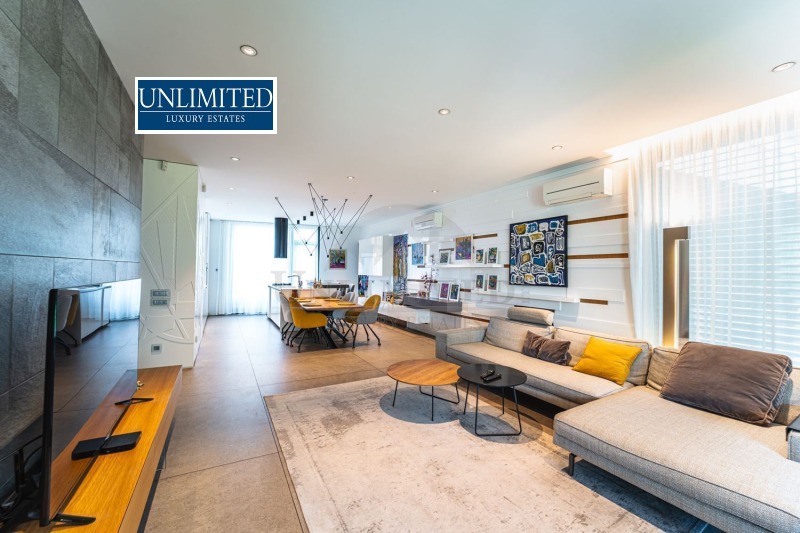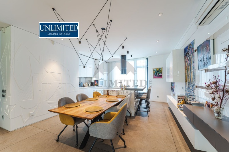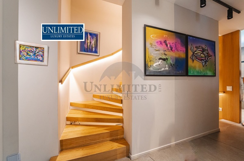 Интериорът е изпълнен с висок клас материали, дизайнерски мебели, модерни осветителни решения и индивидуални арт акценти.