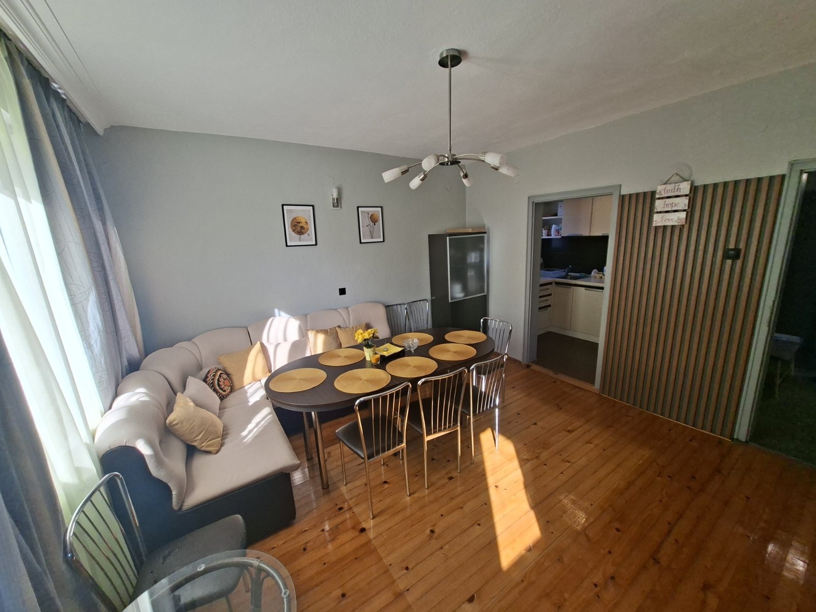 Просторна къща под наем в град Костинброд - идеална за семейство или корпоративен наем за дългосрочен период. На първия етаж има 2 спални, всекидневна с кухня и баня с тоалетна, а на втория етаж има 3 спални и баня с тоалетна,.разполага и с таванско помещение. Къщата е уютна и напълно оборудвана, с голям двор в спокойна част на Костинброд.