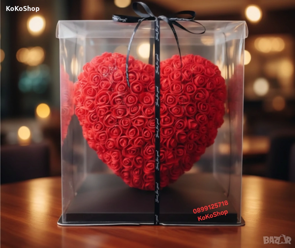 Ключови думи: сърце от рози, рози в кутия, луксозен подарък, романтичен подарък, подарък за Св. Валентин, подарък за 8 март, подарък за жена, оригинален подарък, рози в прозрачна кутия