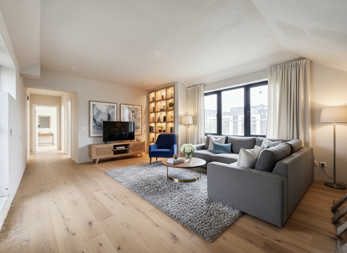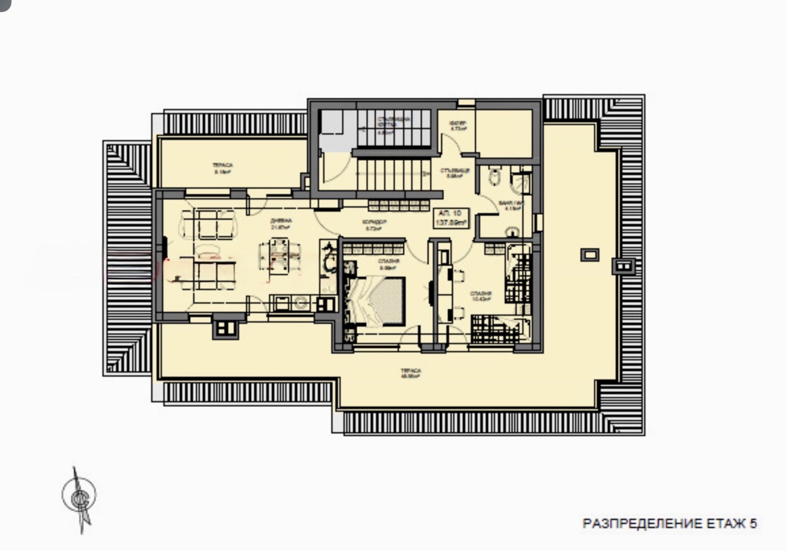НОВ ТРИСТАЕН ПЕНТХАУС С ПОКРИТО ПАРКОМЯСТО разположен на целия последния етаж с 360 градусова панорамна гледка.