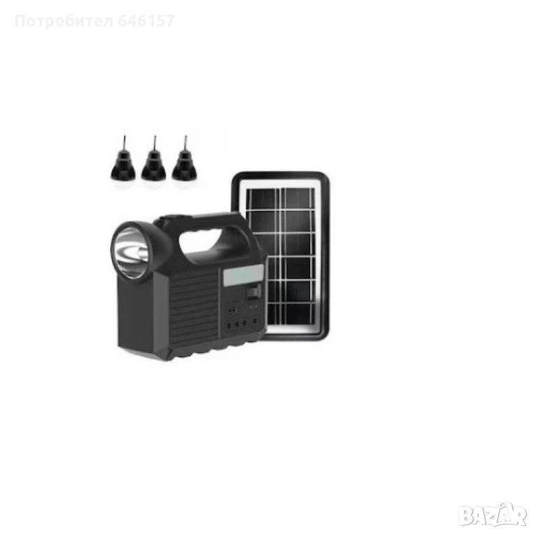 Комплект със соларен панел, фенерче, 3 крушки, USB, снимка 1 - Къмпинг осветление - 53153657 Комплект със соларен панел, фенерче, 3 крушки, USB, снимка 2 - Къмпинг осветление - 53153657 Комплект със соларен панел, фенерче, 3 крушки, USB, снимка 3 - Къмпинг осветление - 53153657 Комплект със соларен панел, фенерче, 3 крушки, USB, снимка 4 - Къмпинг осветление - 53153657 1/4