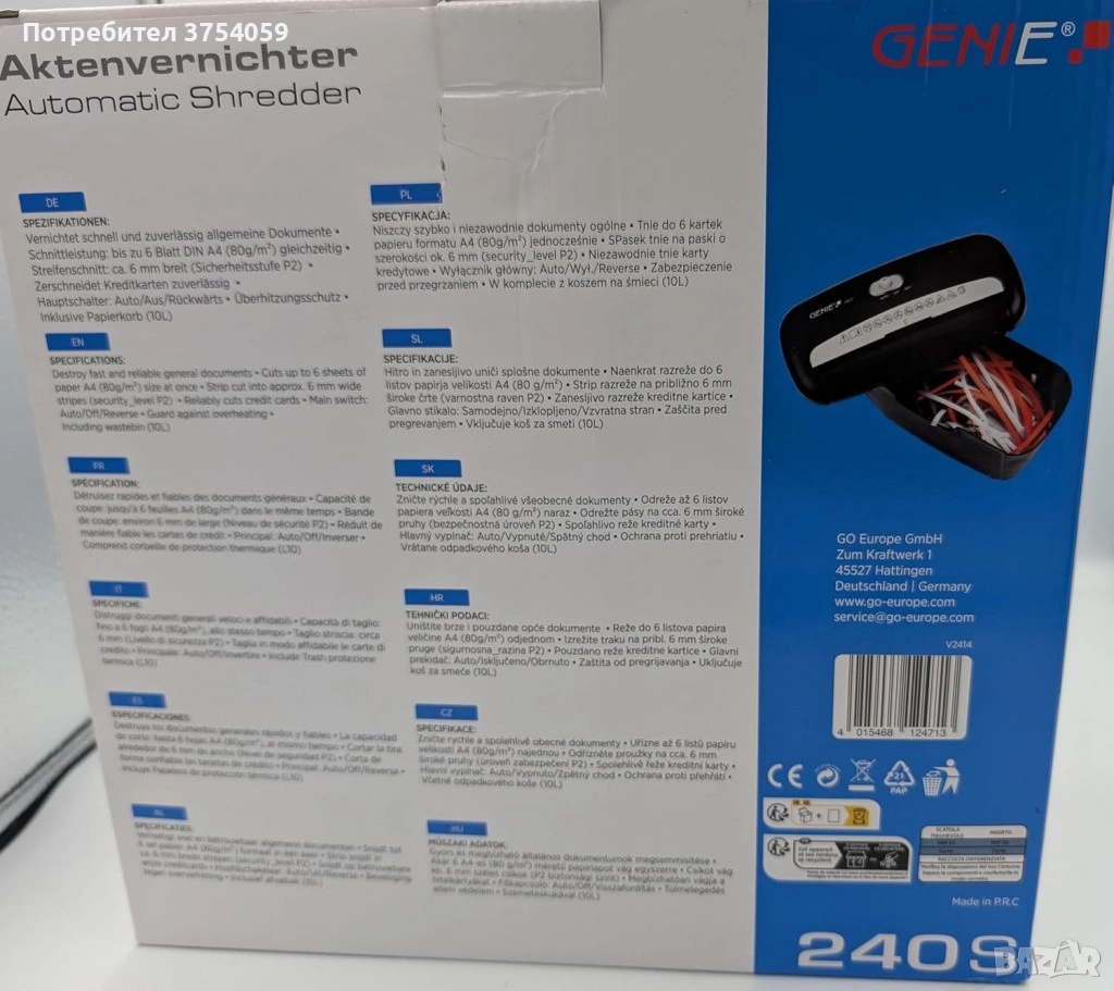 Професионален шредер за документи Genie 240S за унищожаване на документи, хартия и кредитни карти