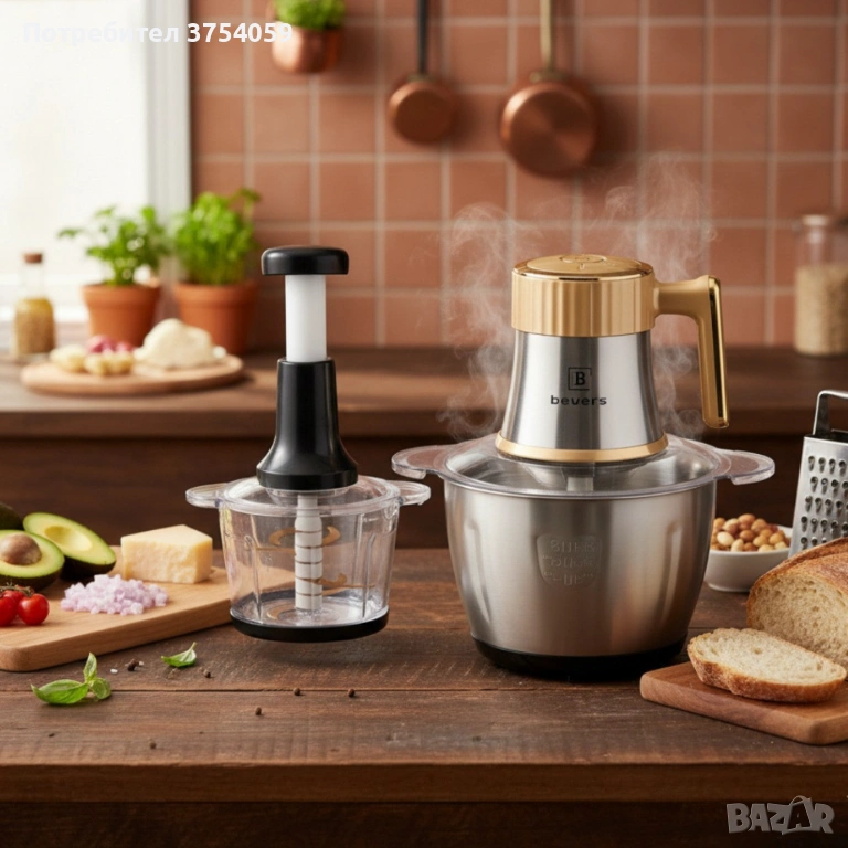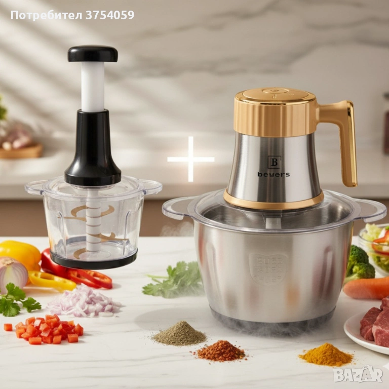 Многофункционален електрически кухненски чопър Beyers BH-2880 + Ръчен чопър с 3L стъклена купа