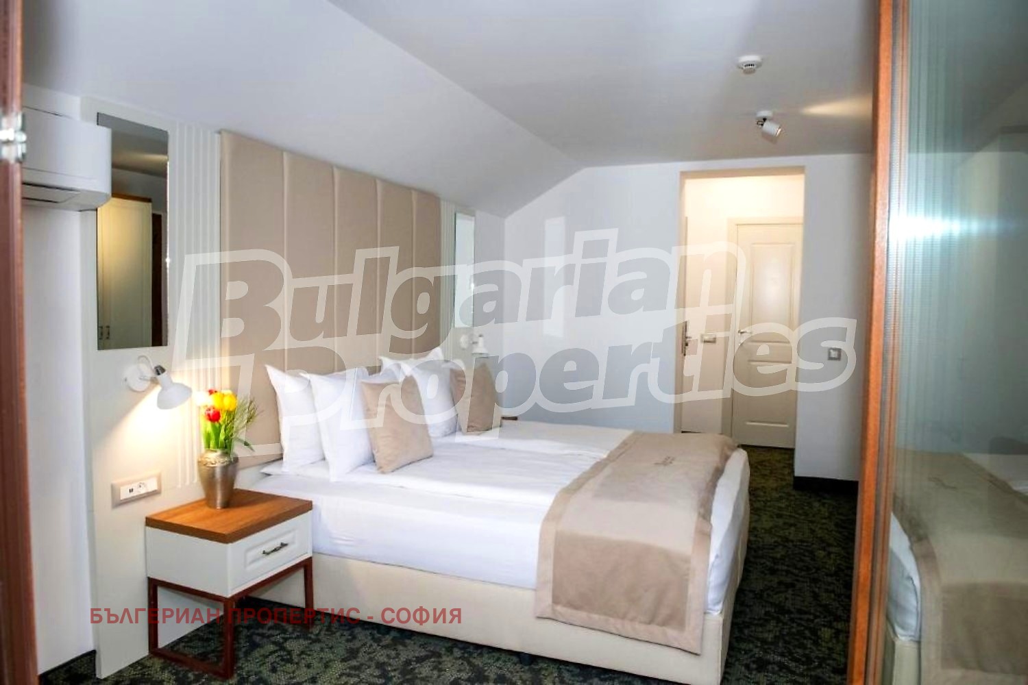 Панорамна бутикова стая с балкон разположена на последен етаж, с директна гледка към пешеходния булевард. Романтично и изключително атрактивно пространство, което добавя допълнителна стойност към портфолиото на имота.