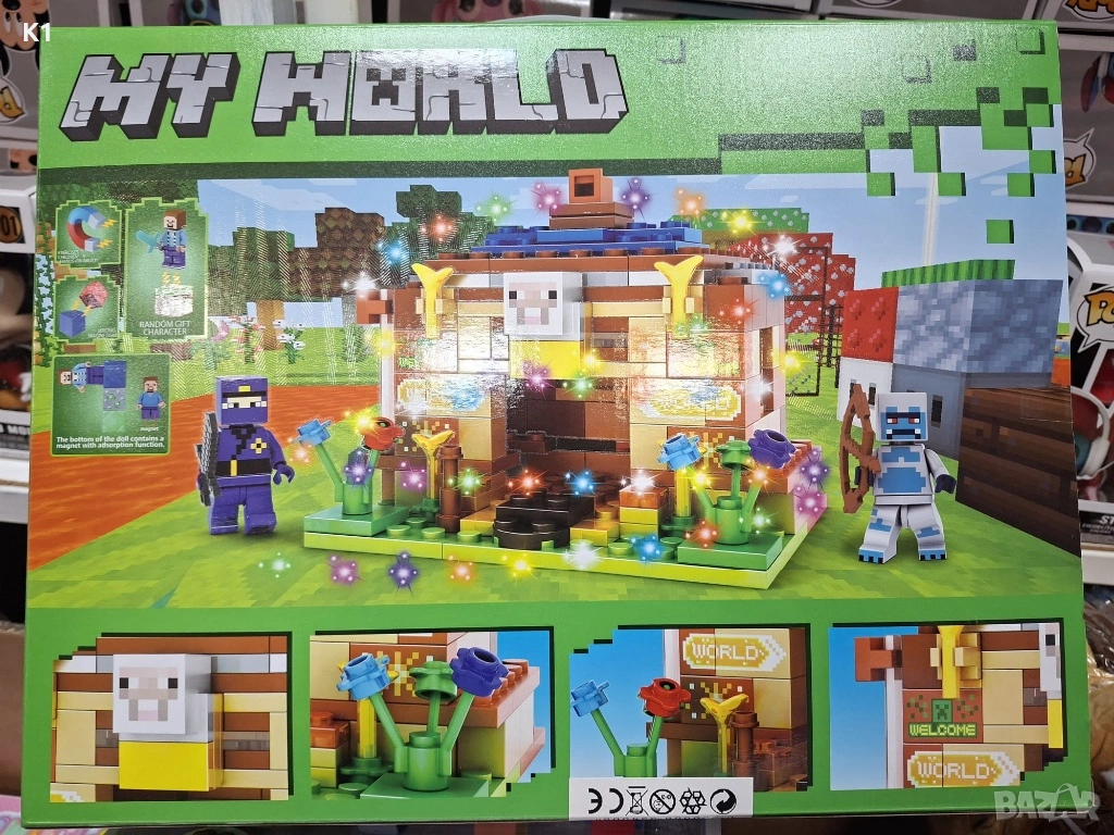 Детски конструктор Майнкрафт със светещи части , 225части , Защитата на фермата Minecraft, снимка 1 - Конструктори - 53154008 Детски конструктор Майнкрафт със светещи части , 225части , Защитата на фермата Minecraft, снимка 2 - Конструктори - 53154008 1/2
