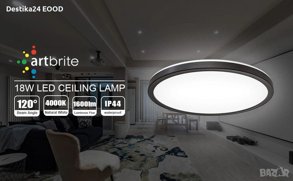 Продавам енергоспестяващ LED плафон за таван Artbrite, подходящ за баня, кухня, балкон, спалня, хол, коридор, гараж и други помещения. Модерен и изчистен дизайн, висока яркост и дълъг живот.