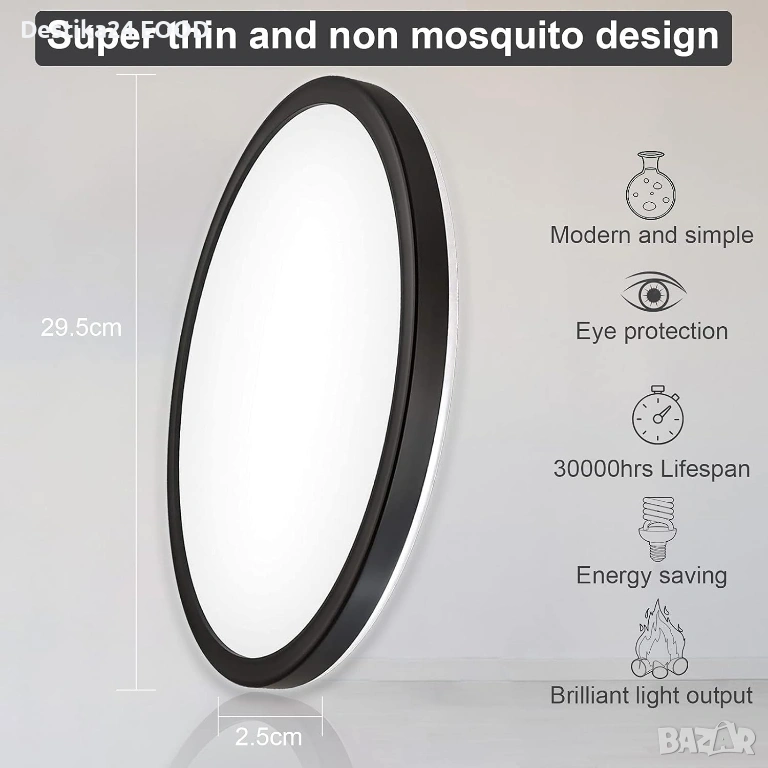 Цвят на плафона: бял с черен кант