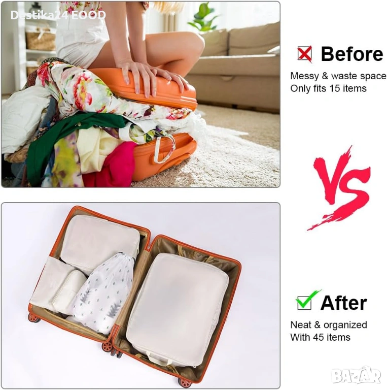 Продавам комплект органайзери за куфар OSDUE – 10 части, подходящи за подреждане и спестяване на място при пътуване. Идеални за самолетни полети, почивки, бизнес пътувания, къмпинг и ежедневна организация на багаж.