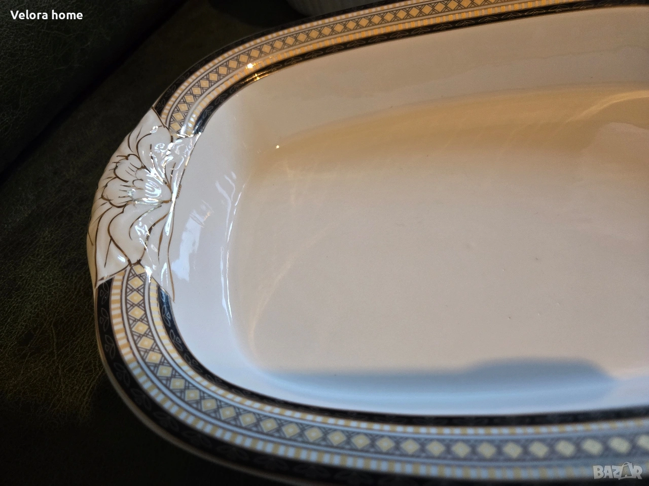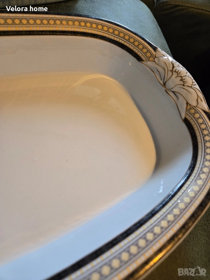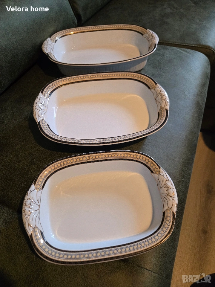 Предлагам изискан комплект от три купи/съдове в различни размери, отличаващи се с класическа елегантност и прецизна изработка. Фин декоративен орнамент със златен кант придава усещане за стил и лукс, подходящи както за ежедневна употреба, така и за официални поводи и празнична трапеза.