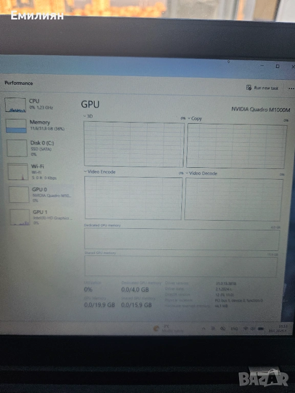 Видео карта - вградена Intel и външна Nvidia от професионалната Quadro серия с 4 Gb собстевна памет