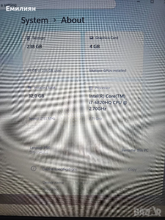 Продавам мобилен Lenovo Workstation P50