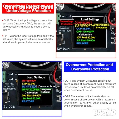 Мощност до 120W с поддръжка на напрежение до 50V и ток до 15A