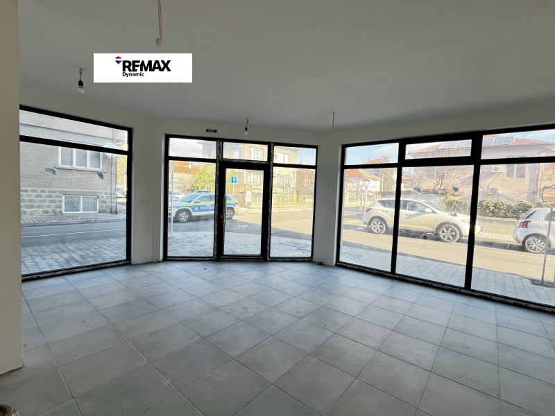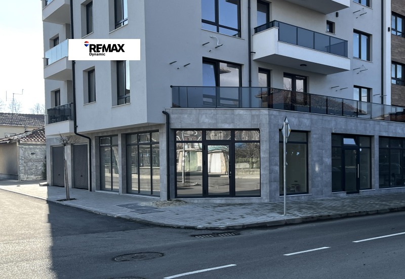 RE/MAX Отдава под наем ъглово търговско помещение с отлична видимост, разположено на партер в нова сграда с представителна визия, на главна улица в близост до центъра.