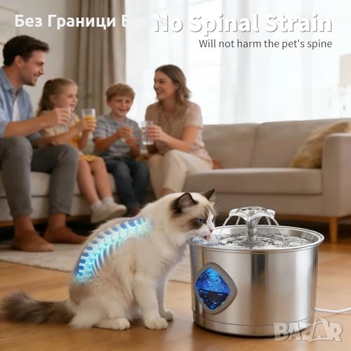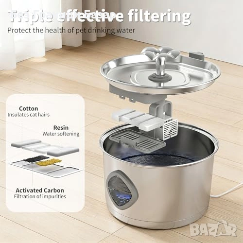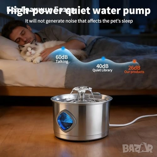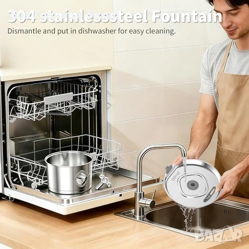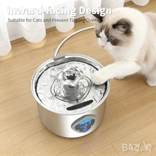 Нов Котешки фонтан 2.8L от неръждаема стомана с тиха помпа за вода котка