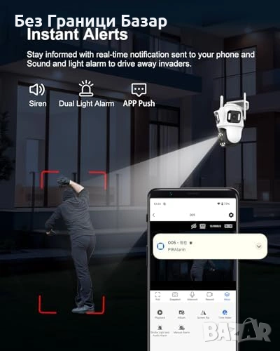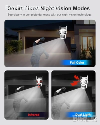 Нова 9MP WiFi външна камера 360° три обектива AI цветно нощно виждане