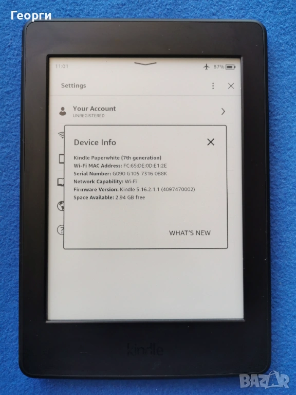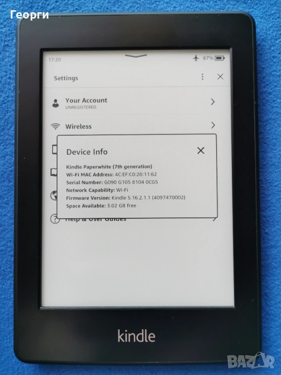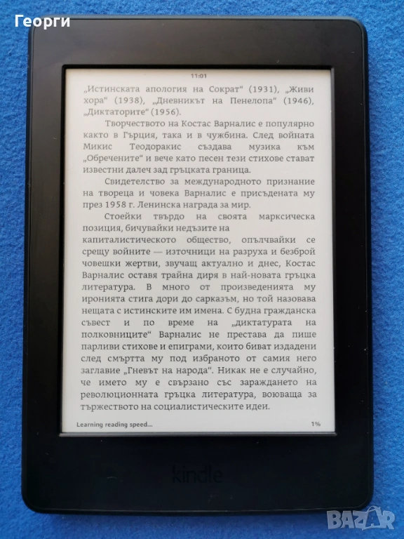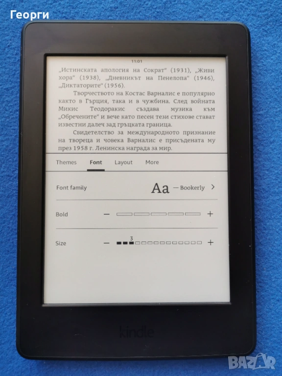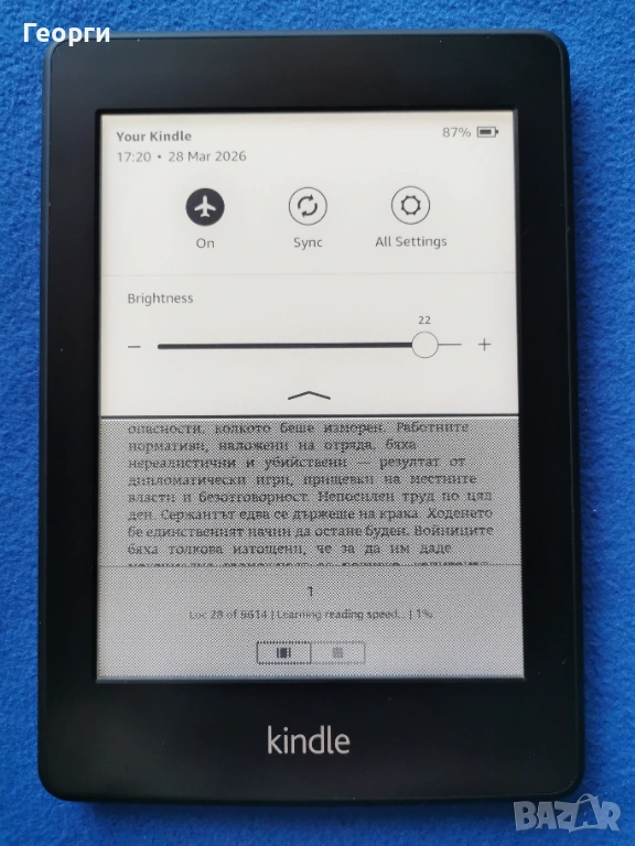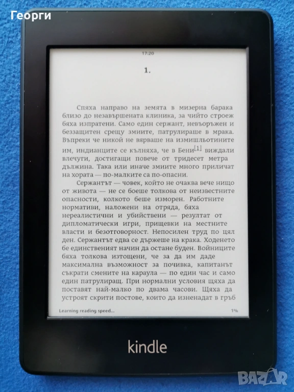 Продавам Kindle Paperwhite 7 Generation. В добро състояние. Работи добре всичко както трябва без проблеми. Продава се без кабел и зарядно, зарежда се с micro USB, от телефоните става. Цената е без калъфчето от снимките, ако искате и него + 5 евро