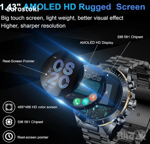 Обновен смарт часовник H33. Този мъжки смарт часовник е изцяло метален, с 1.43" AMOLED цветен екран, осигуряващ сензорно изживяване с ултра висока разделителна способност. Здрав и издръжлив, подходящ за различни сценарии в живота.