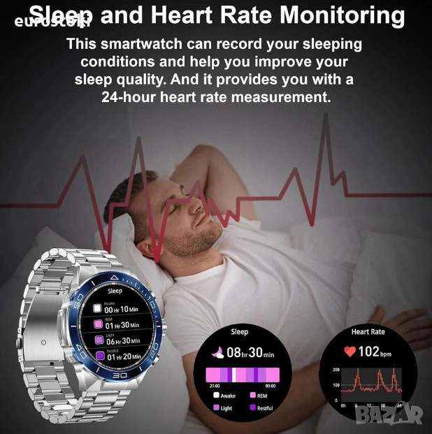 Монитор на здраве. Смарт часовникът за мъже има вграден високопроизводителен сензорен монитор, който събира данни точно, следи сърдечната честота, кръвното налягане и кислорода в кръвта 24 часа в денонощието и предоставя цялостен анализ на съня (дълбок сън, лек сън и будност). Смарт часовникът може да ви помогне да разберете по-добре здравето си, качеството на съня и упражненията си и да коригирате житейските си навици според данните, така че да ставате все по-здрави.