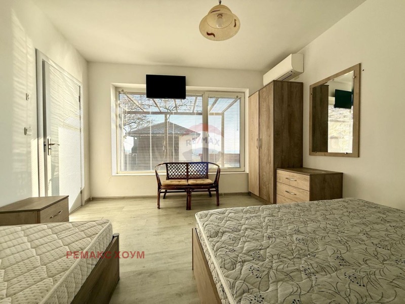 Жилищната сграда е със съвременен елегантен стил. Тухлена е, има и външна изолация. Основата на самата къща е бетонна плоча. Изложението на имота е югоизточно, което го прави много топъл и слънчев. Изграждането на имота е осъществено с използване на качествени материали. Монтирана е добра PVC дограма. Прозорците са големи и са много, което осигурява още повече естествена светлина в имота и позволява морето да се вижда от всички стаи . Подовите настилки са изградени с ламинат и теракота. Покривът е в отлично състояние. Имотът е с функционално разпределение, към втората част на жилището /втора и трета спални, антре и санитарен възел/ има отделен вход. Всички стаи са просторни, без преход. Всекидневната е удобно зонирана и е много голяма. В нея има достатъчно място и за допълнителна спална зона. Отоплението/ охлаждането е с мощни климатици, които са монтирани почти във всяка стая. Налични са интернет и телевизия. Жилището се отдава във вида, в който е представено на снимките, напълно обзаведено и оборудвано с всичко необходимо за комфортно пребиваване и постоянно живеене. При необходимост има възможност за преместване или изнасяне на мебелите. Цветовете и стилът на жилището са естетично съчетани и са меки и неутрални, което създава усещане за уют и комфорт.