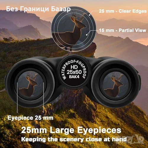 Нов 25x60 бинокъл BAK4 FMC водоустойчив против замъгляване за лов птици