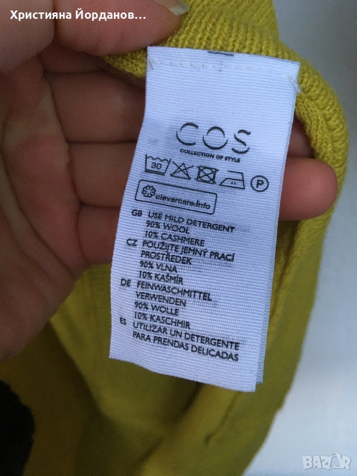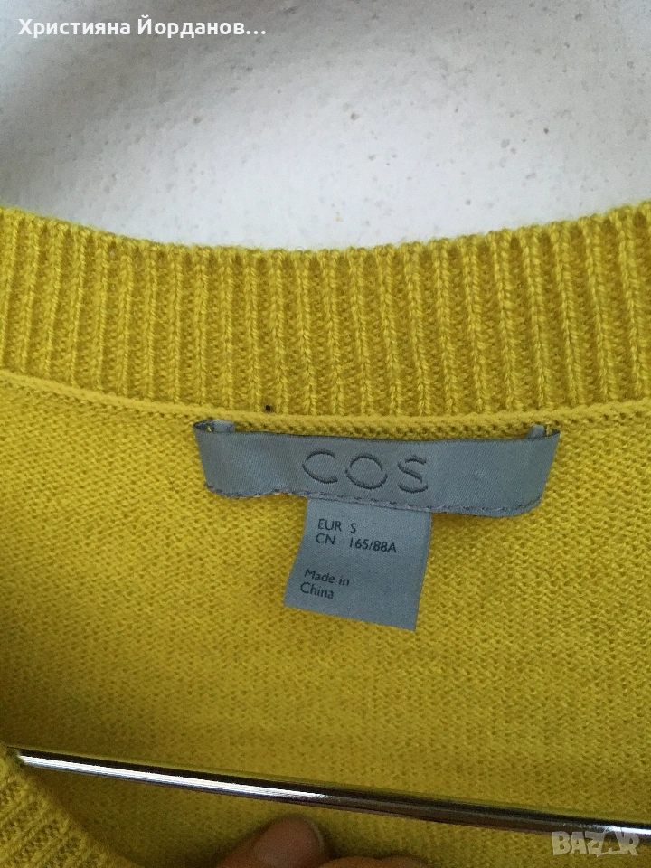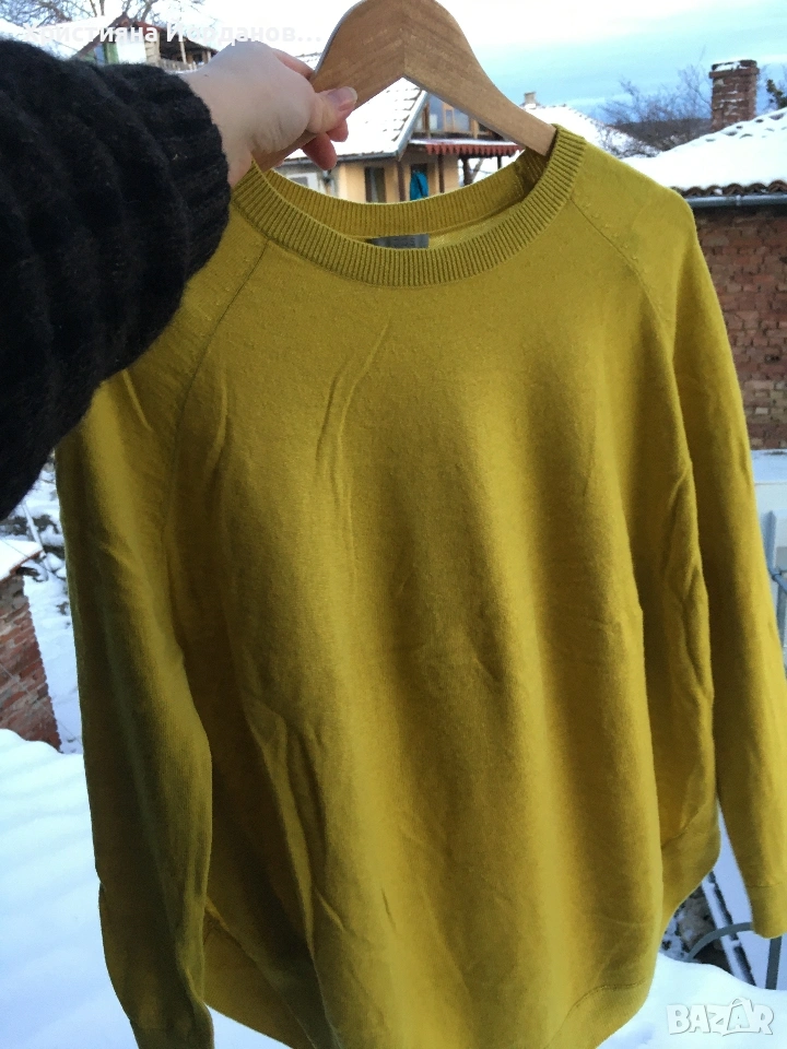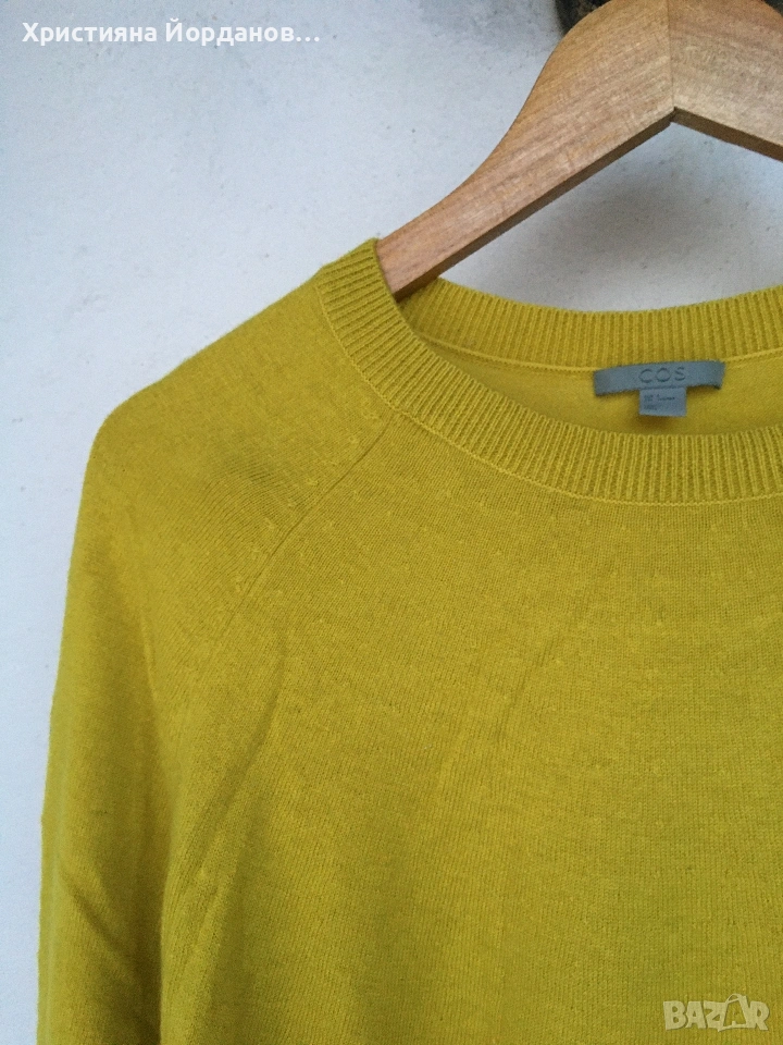 Пуловер тип пончо 👐 COS 90% вълна и 10% кашмир. Цвета е olive yellow Страните са отворени тип пончо Размер С /(S) Отлично състояние