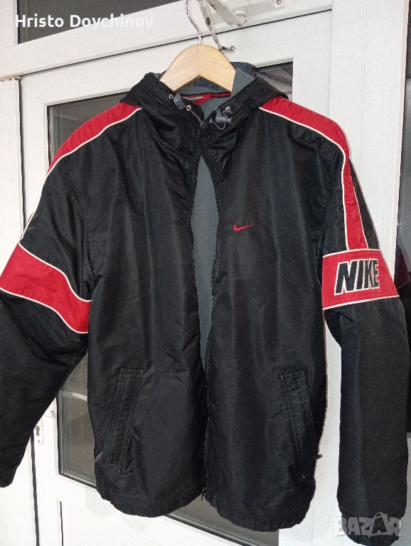 Продавам оригинално Nike windbreaker яке в vintage / oldschool hip-hop стил, типичен за 90-те години. Класически черно-червен дизайн с контрастни панели, лого Nike на ръкава и изчистена спортна визия.