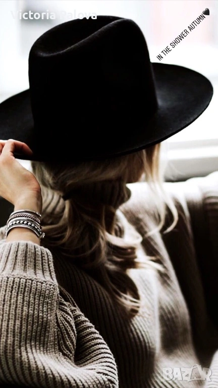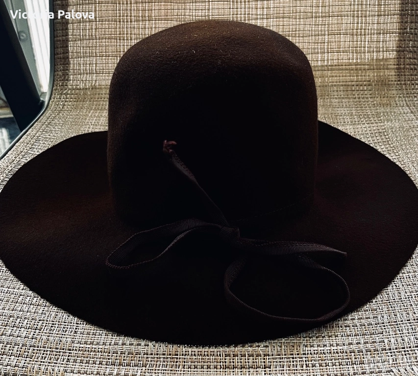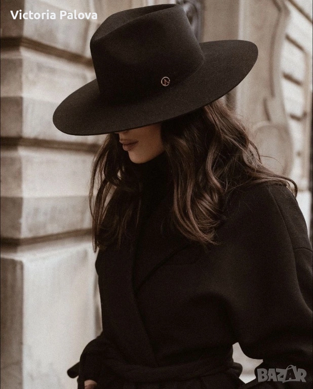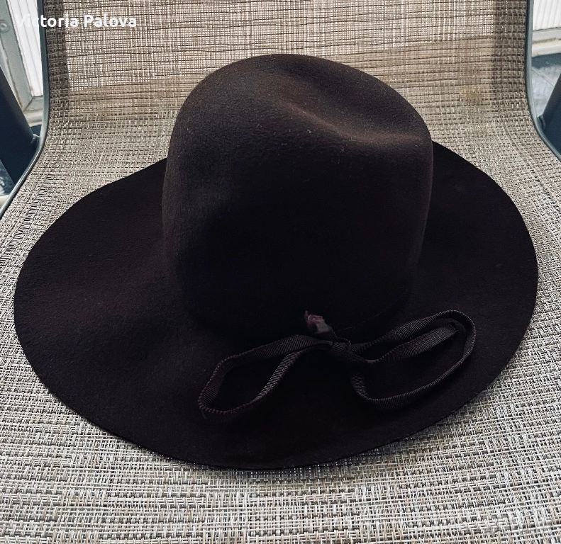 Елегантна дамска шапка, изработена от 100% естествена вълна ( фин филц), с плътна компактна структура и кадифено меко усещане при допир. Материята е топла, устойчива, държи формата си отлично, без да омеква или увисва - типично за качествена вълнена изработка. Формата е класическа и изключително женствена - с добре оформена гладка корона и леко падаща периферия, която красиво рамкира лицето и придава завършен аристократичен вид. Декорирана е с фина текстилна панделка в тон, дискретен детайл, който подчертава изчистения дизайн, без да натоварва. Цветът е дълбок тъмен шоколадово кафяв - благороден нюанс, който се съчетава лесно с палта, тренчове, вълнени сака и кашмирени шалове. Вътрешният етикет е знак за немско качество.